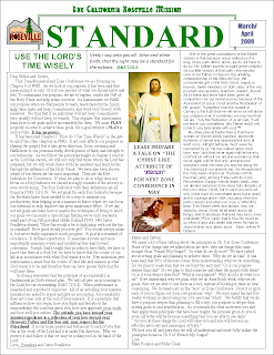 September 2008The California Roseville Mission Standard is the news letter that is sent out to missionaries every transfer. In it contains mission news, calander dates, arrivals and departures, and much more. It was originally called the CRM Reaper, with reference to D&C 4. The new title was named in a contest, which was won by Sister Emilee Fuhrimann, whith reference to another scripture in the Doctrine and Covenants, D&C 115:5 .